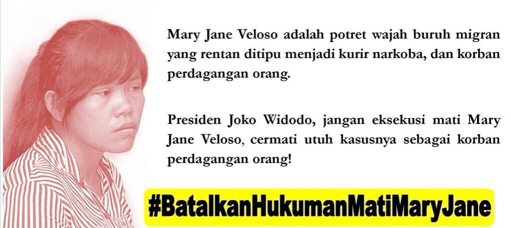Menurut sebagian besar netizen, Mary Jane tidak layak dihukum mati. Dia adalah seorang ibu malang yang ditipu dan dijanjikan akan bekerja di Indonesia, namun malah dititipi heroin seberat 2.6 kg di dalam tasnya. Jane mengaku tidak tahu sama sekali bahwa benda tersebut adalah narkoba.