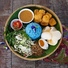 Yap, nasi kerabu memiliki isian yang sama dengan nasi pecel. Di dalam satu piring terdapat nasi, tauge, bumbu kacang, irisan telur atau ayam, dan krupuk sebagai pelengkap. Bedanya, nasi kerabu memiliki warna biru yang didapat dari kelopak bunga kembang telang.